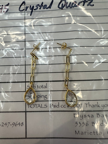 Elyssa Bass Crystal Quartz Paperclip Earrings