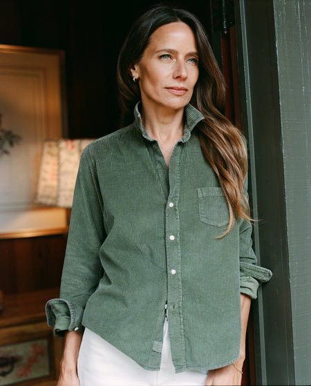 Sold Out Quick Shop Frank and Eileen Barry Tailored Button Up Top (cord/ army green) $258.00 Quick Shop