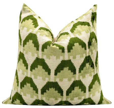 Quick Shop Handmade Velvet Throw Pillow with Green and Blue Geometric Ikat Design - High-Quality 20x20 Inch Decorative Accent with Premium Down Feather Insert $275.00 Quick Shop