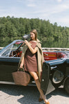 DIMENSIONS: 21" L (top) x 11”W (base) x 13” H x 5" D