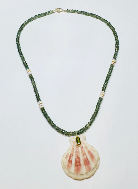 Theodosia - Green quartz necklace with strawberry shell pendant