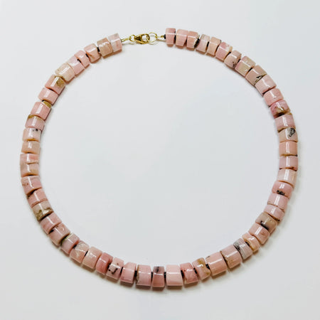 Theodosia Speckled Pink Opal Heishi Cut Candy Necklace