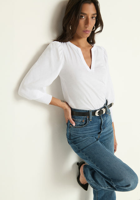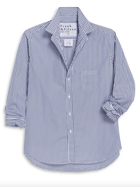Frank and Eileen Relaxed Button-Up Shirt (White Navy Stripe)