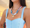 We are loving the coastal cowgirl look of our Bali scarf necklace! (gorgeous adjustable satin material with your choice of 18k gold pendant)