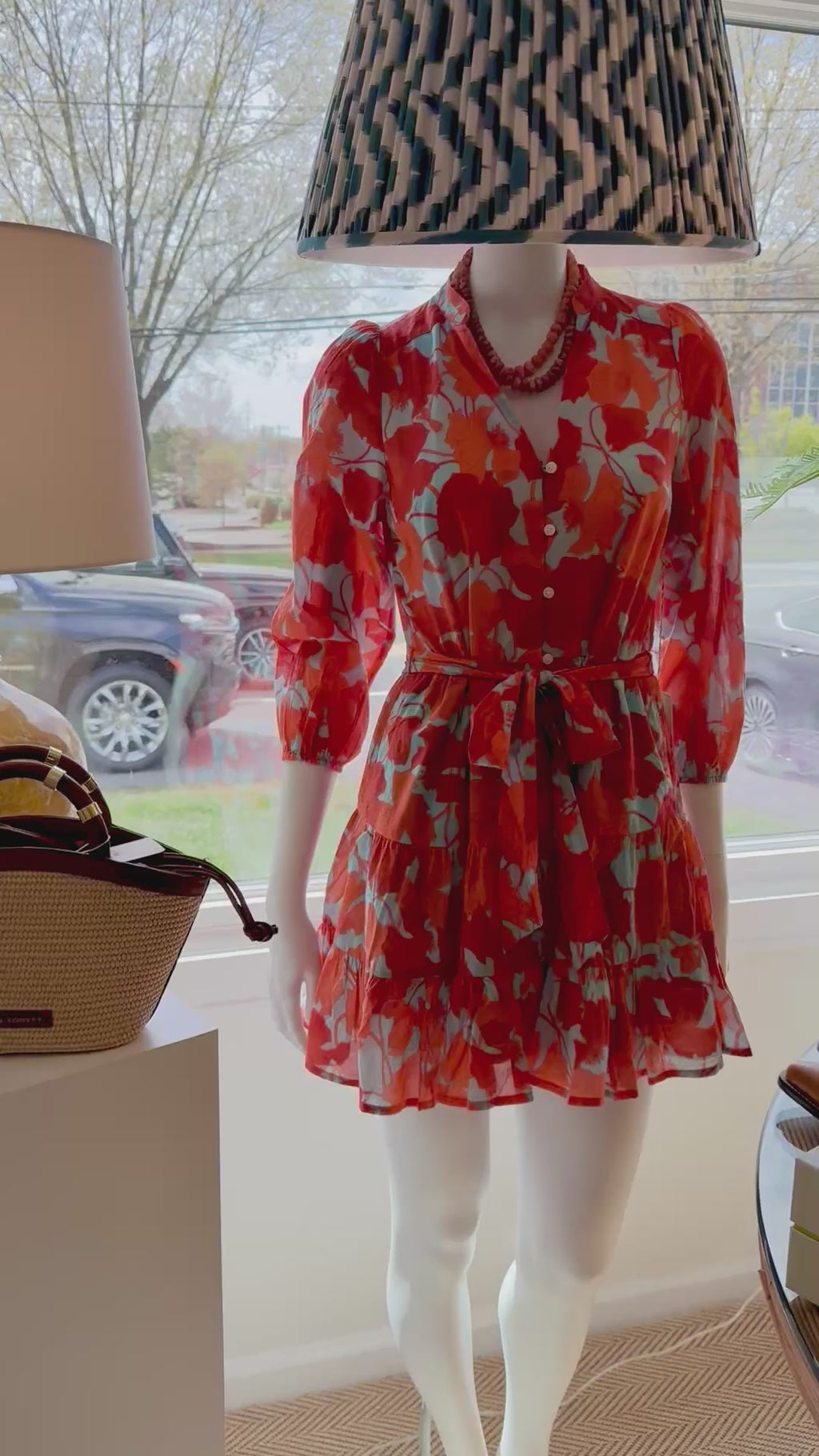 This mini dress is made from lightweight cotton and features a removable waist belt and a tiered skirt for added movement.