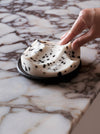 Cast in one pour, this dish is formed like a button to showcase your everyday favorites. Handmixed with different minerals and natural pigments, the Bouton carries subtle textures on its surface. As the concrete settles uniquely for each pour, no two are the same. Perfect in combination with your favorite objects, the Bouton series serves as a set of trays to collect trios of items. Use as coasters or plates for serving. The small is sized perfectly to hold our Erode Soap. Small ~ 5" round ~ 0.25 lb