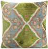 Handmade Velvet Throw Pillow with Green and Blue Geometric Ikat Design - High-Quality 20x20 Inch Decorative Accent with Premium Down Feather Insert