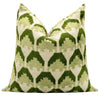 Crafted from high-quality, vegetable-dyed velvet, this pillow is eco-friendly and meticulously handmade, ensuring a soft, durable finish that stands the test of time. The geometric pattern, with its rich green hues and cream accents, creates a visually appealing design that complements a variety of interior styles, from modern and minimalist to eclectic and contemporary.