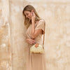 Ivory Rattan Clamshell Clutch and Crossbody Bag