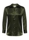 100% silk charmeuse• 3/4 sleeves• High-low shirttail hem• Slim fit• Front button closure