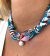 Classic freshwater coin pearl on our scarf necklace in your choice of prints.