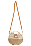 Two Tone Rattan Straw Wicker Crochet Woven Beach Clutch Circle Crossbody Purse Bag -Dimensions: 8.5" * 7.5" * 5"